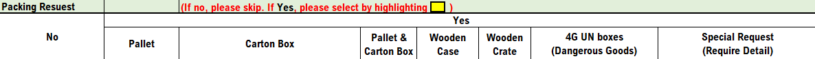 If yes, please select packing request: Pallet, Carton Box, Pallet & Carton Box, 4G UN Boxes (Dangerous Goods), Wooden Case and Wooden Crate