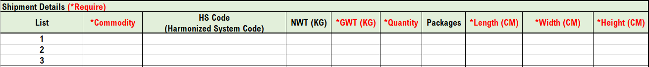 Optional Information: Harmonized System Code-HS Code, Net Weight of each item (NWT) and Package